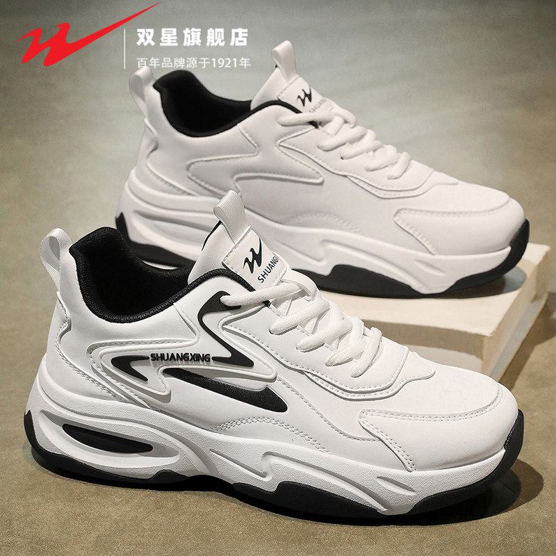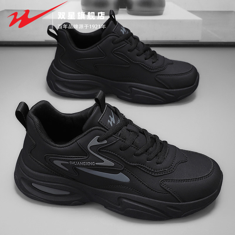 天猫双星黑武士男鞋冬季棉鞋皮面休闲跑步鞋青少年防滑厚底减震运动鞋