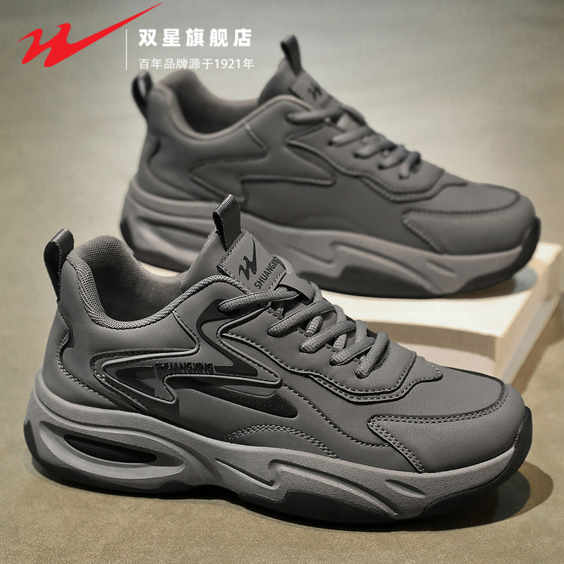 运动鞋男鞋春秋新款皮面防水休闲鞋潮流百搭防滑软底跑步鞋老爹鞋