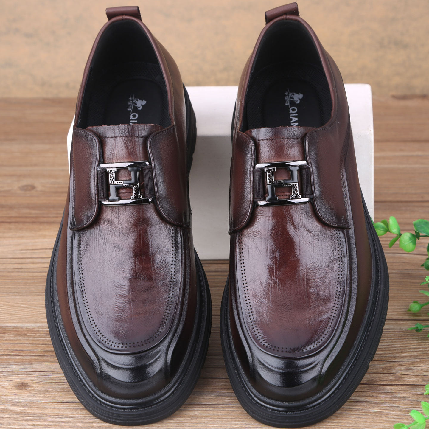 淘宝2025秋季新款男鞋商务休闲皮鞋厚底真皮潮鞋系带软底牛皮英伦棕色