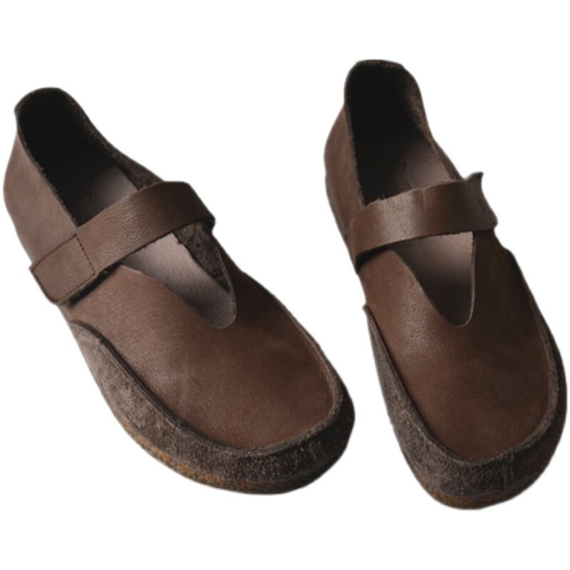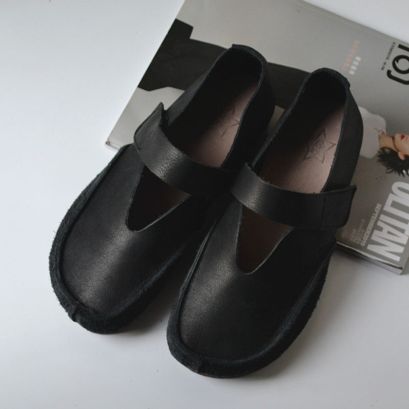 淘宝真皮头层牛皮软底休闲皮鞋一脚蹬男女复古文艺单鞋佛系玛丽珍外贸