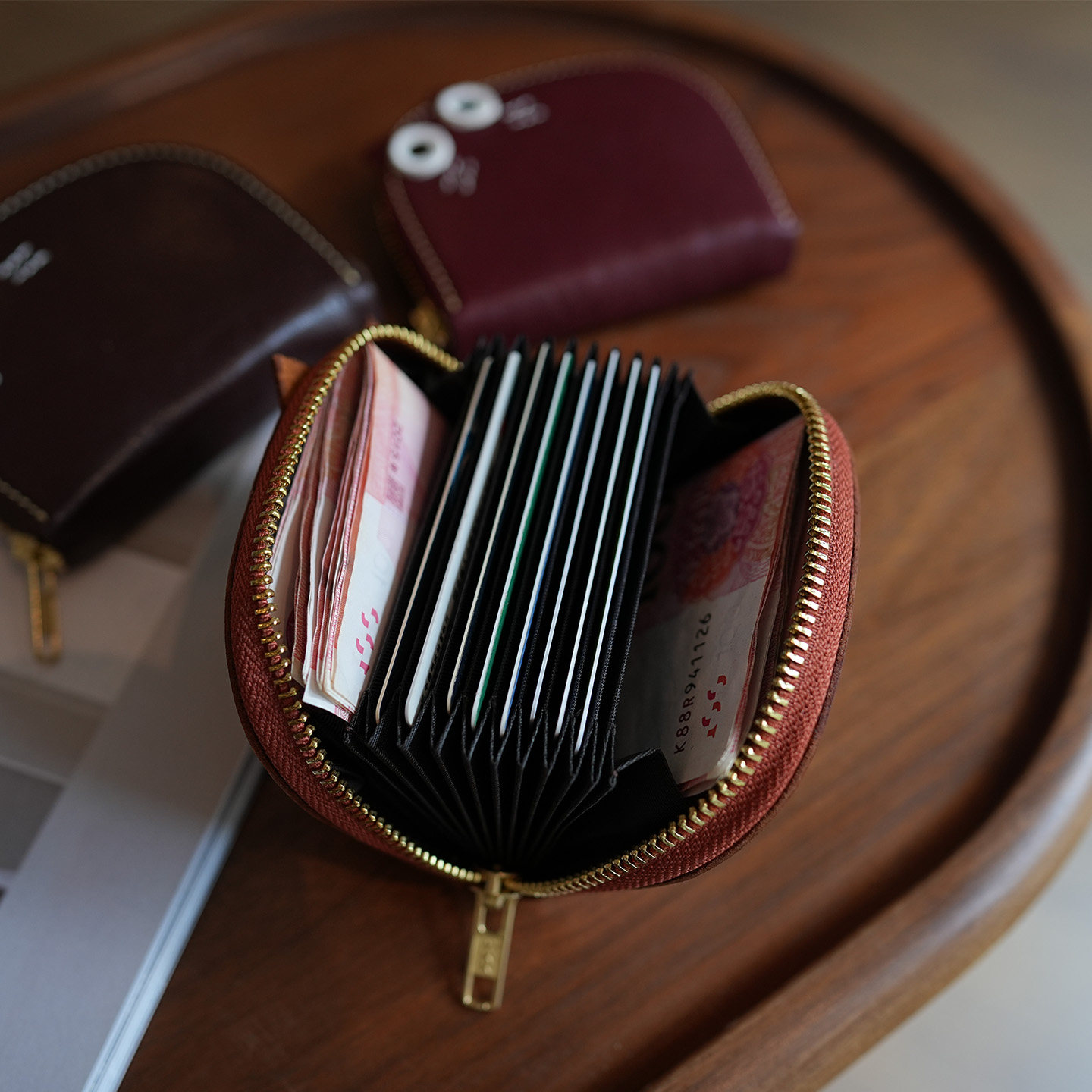 淘宝鹿小姐复古可爱植鞣牛皮大容量风琴卡包真皮银行卡零钱收纳包