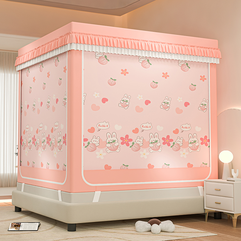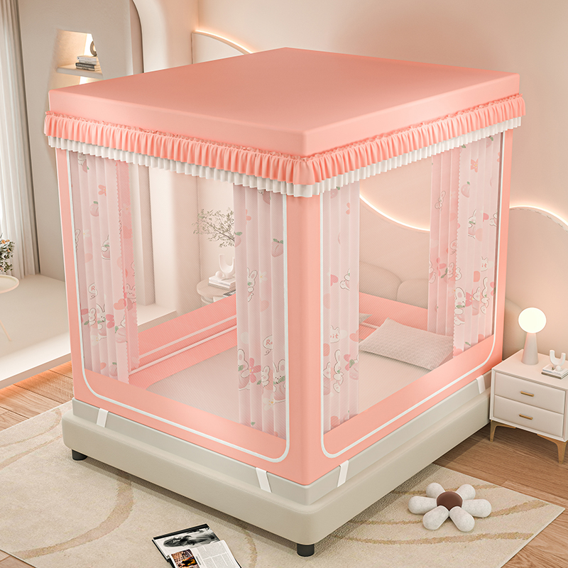 淘宝防尘蚊帐遮光家用带支架床帘一体式蒙古包全封闭坐床式方顶布拉链