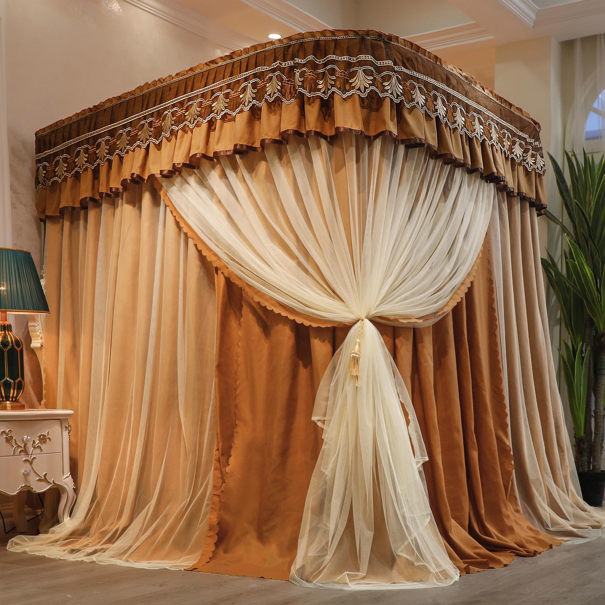 淘A类遮光床帘一体式宫廷落地蚊帐三开门防尘床幔保暖卧室2024新款