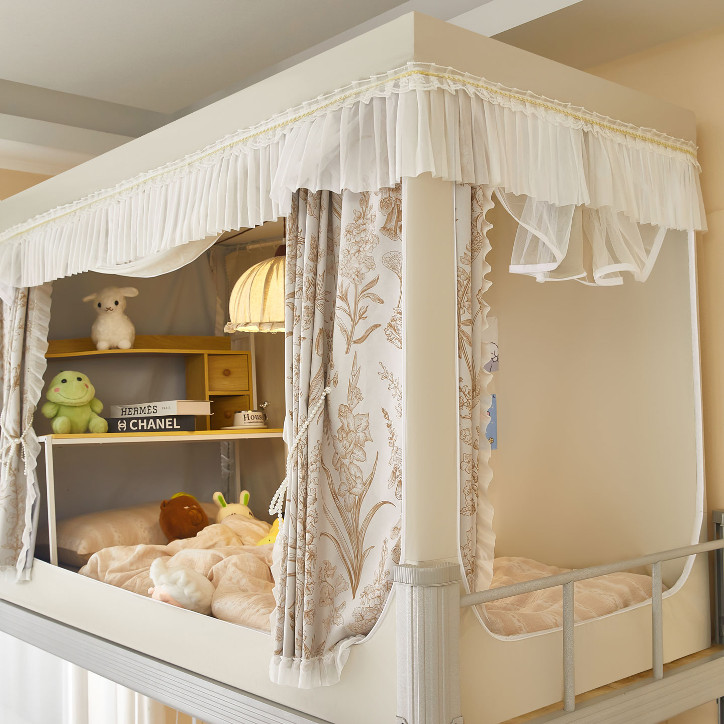 富俪姿子母床帘蚊帐上下铺遮光一体式书架梯形学生宿舍90儿童双层