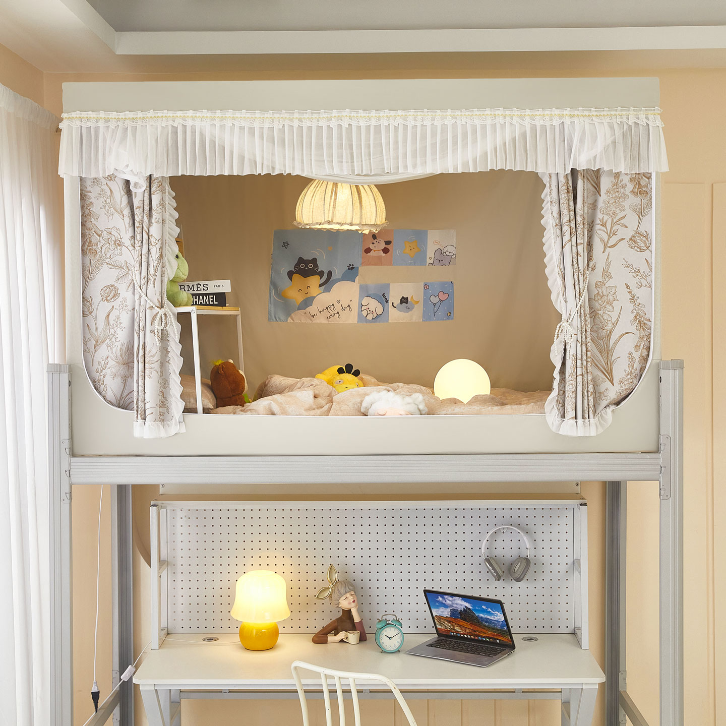 天富俪姿子母床帘蚊帐上下铺遮光一体式书架梯形学生宿舍90儿童双层