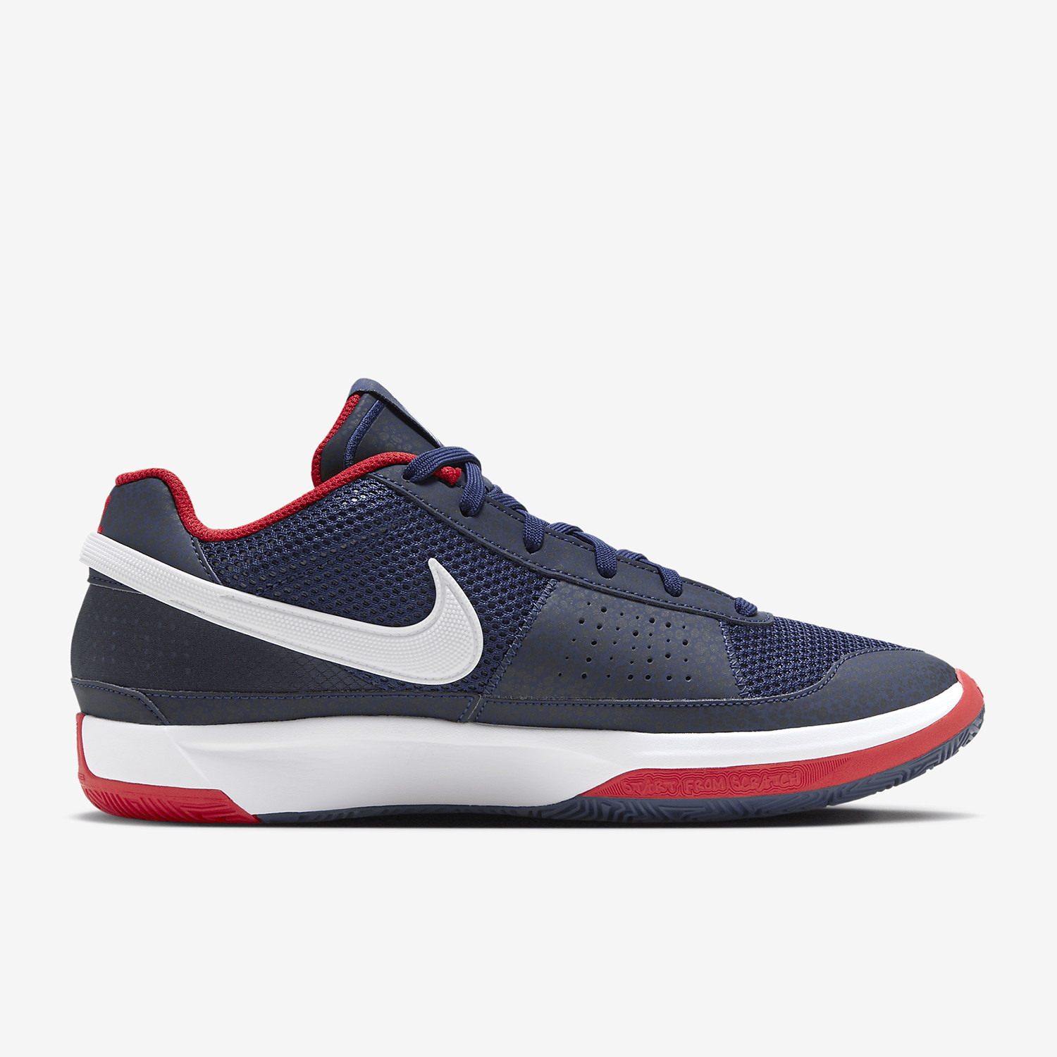 Nike 正品 JA1 EP 莫兰特男子篮球鞋(DR8786-403)专为实战设计,灵感源自NBA新星贾·莫兰特。鞋款搭载前掌 Zoom Air 缓震单元,提供强劲回弹与快速响应,助力爆发性突破与急停跳投。工程网眼鞋面结合动态飞线技术,兼顾透气性与足部锁定,增强侧向支撑。外底采用多向耐磨橡胶纹路,提升抓地力与耐久性,适合室内外球场。EP版本强化了鞋面与外底材质,适应高强度对抗。整体设计轻量灵活,融合速度与力量美学,是追求性能与风格兼备的篮球爱好者理想之选。