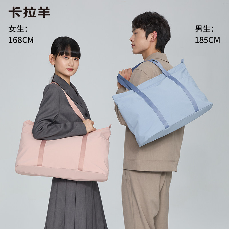 卡拉羊大容量防水旅行包,集实用与时尚于一体,专为现代出行设计。采用高密度防水面料,有效抵御雨水泼溅,保护包内物品干爽整洁。超大容量主仓搭配多层分隔收纳,轻松容纳衣物、鞋履、健身装备或差旅用品,井然有序。侧边可插拉杆设计,出行时稳固贴合行李箱,解放双手。加厚提手与可调节肩带,背负舒适省力。男女通用简约外观,适配健身、旅行、通勤等多种场景。无论是周末短途还是日常运动,这款托特包都是您高效出行的理想伴侣,兼顾功能性与耐用性,让每一次出发都轻松自在。