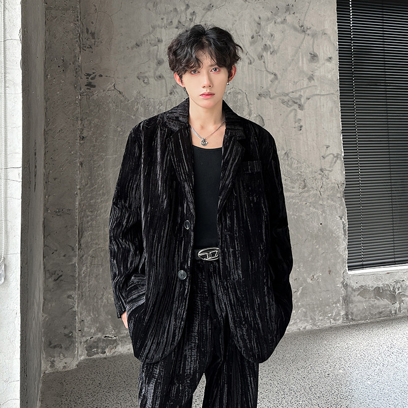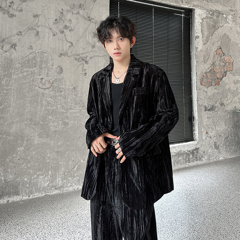 淘宝秋冬款复古丝绒休闲西装外套男雅痞气质老钱风高级感直筒裤两件套