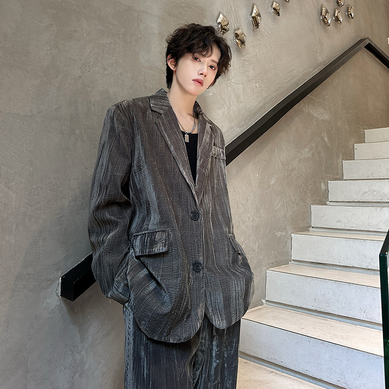 淘人字纹肌理感休闲西服套装秋冬时尚宽松男士外套免烫高级感西装潮