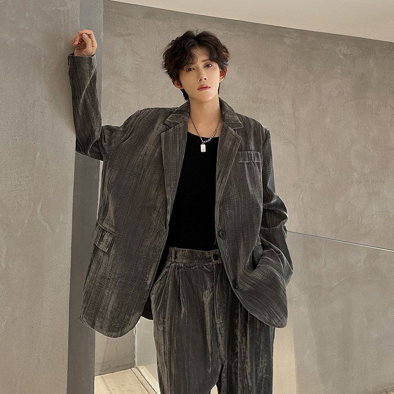 龙叨叨秋季新品轻奢高级感设计款西装套装男痞帅宽松休闲西服西裤