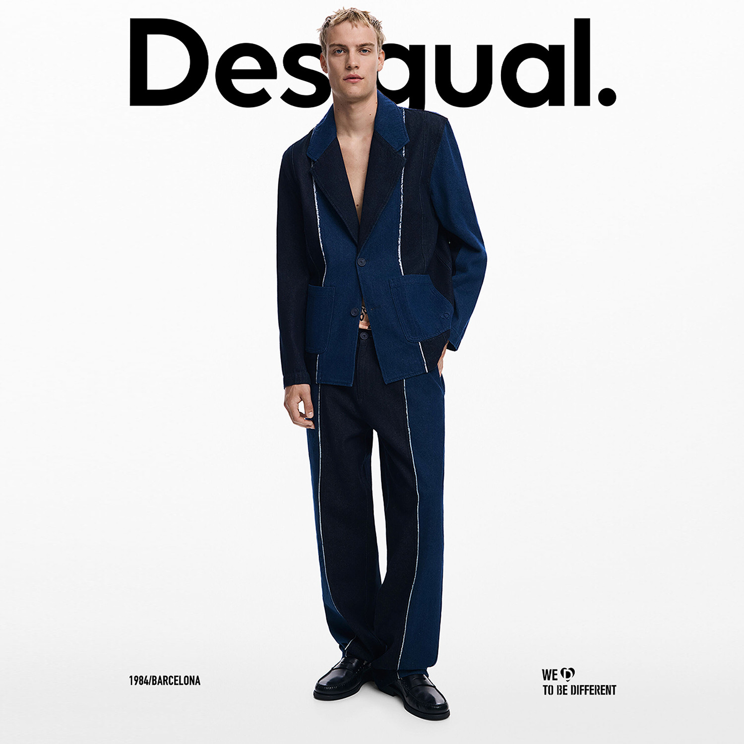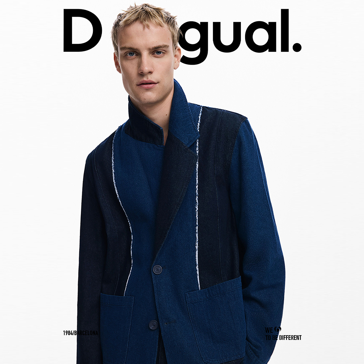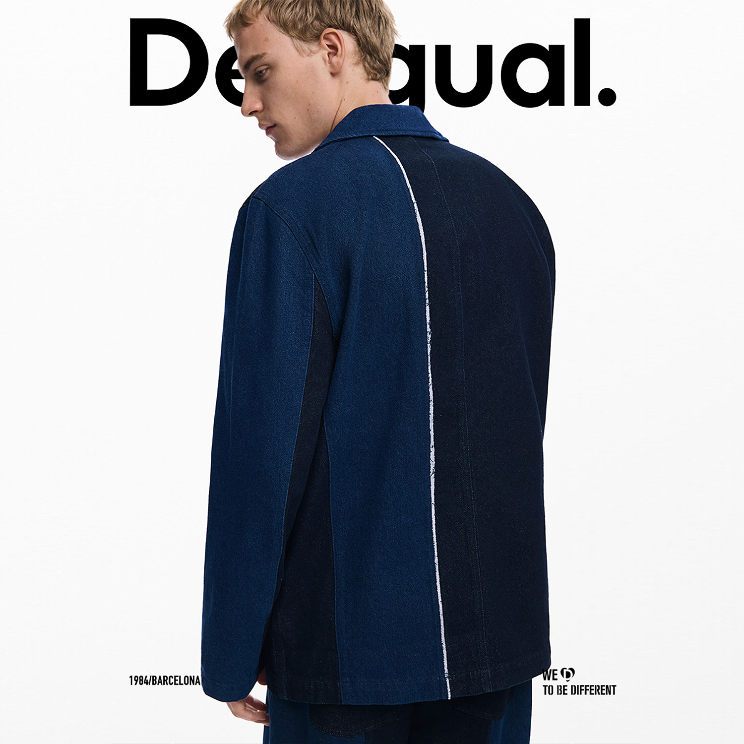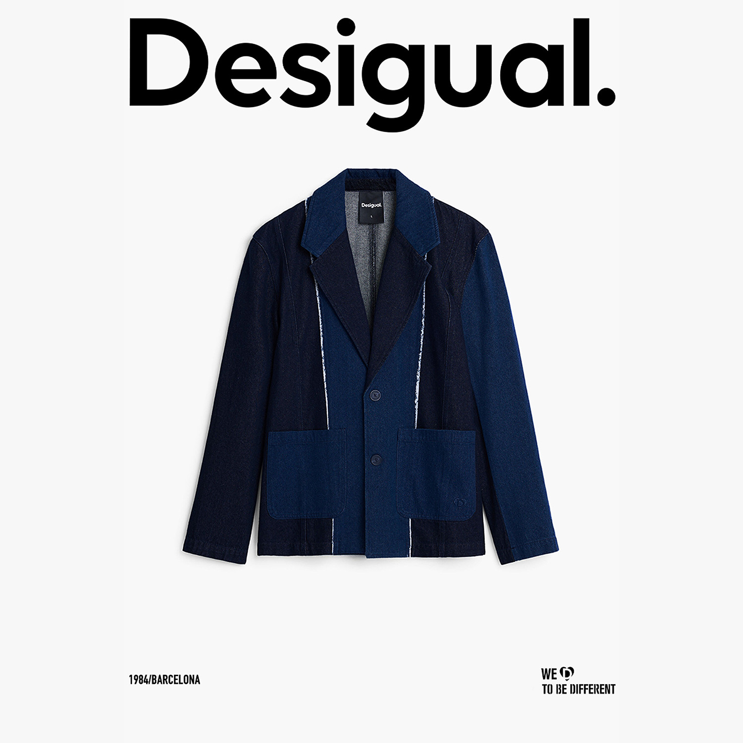 天猫Desigual25秋冬新品双色牛仔拼接长袖男式休闲西装外套