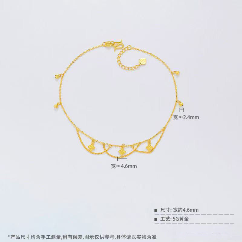 淘宝5G黄金四叶草脚链女999足金小克重爆闪蹦迪珠新款纯金脚饰送女友