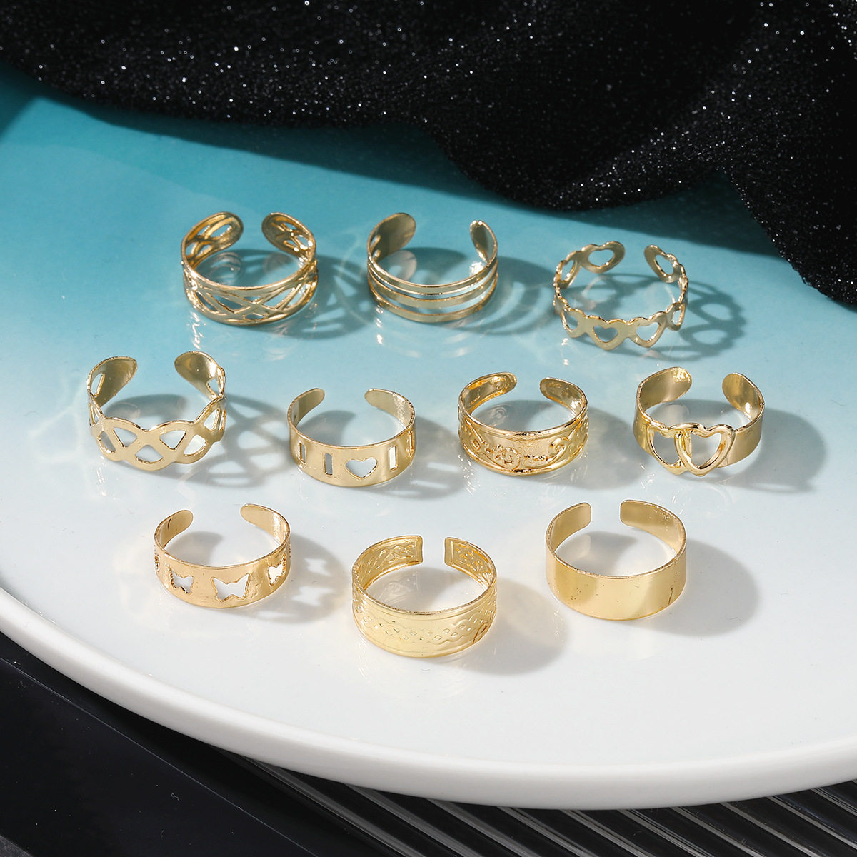 淘宝欧美跨境沙滩脚戒星星月亮10件套开口脚戒指套装个性几何型脚饰女