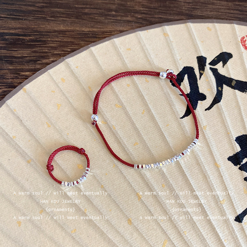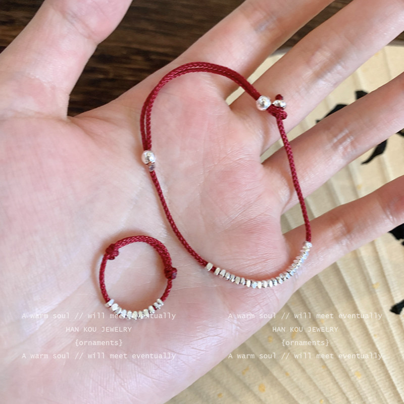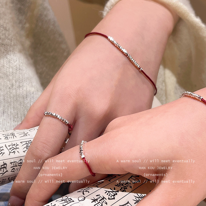 淘小众设计感碎银子红绳脚链女简约百搭脚环不掉色轻奢高级精致脚饰