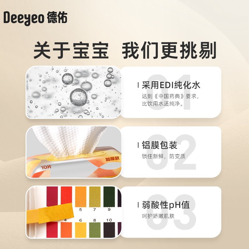 德佑婴儿湿巾小包随身装,专为0-3岁婴幼儿及新生宝宝设计,采用加厚柔软无纺布,亲肤无刺激,通过手口安全测试,可安心用于宝宝手、口、臀部清洁。每包含10抽,小巧轻便,轻松放入妈咪包、婴儿车或口袋,出行必备。配方温和,不含酒精、香精、荧光剂,贴近肌肤天然pH值,呵护宝宝娇嫩肌肤。独立翻盖设计,锁水防干,即用即取。无论是居家护理还是外出应急,德佑婴儿湿巾都以安全、便捷、洁净赢得万千妈妈信赖,是新生儿家庭不可或缺的贴心之选。