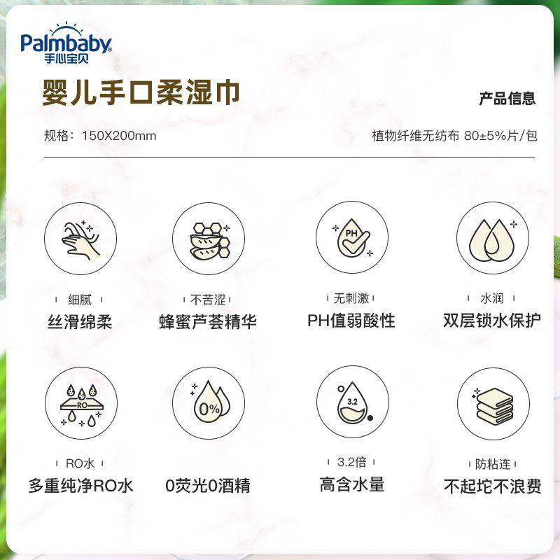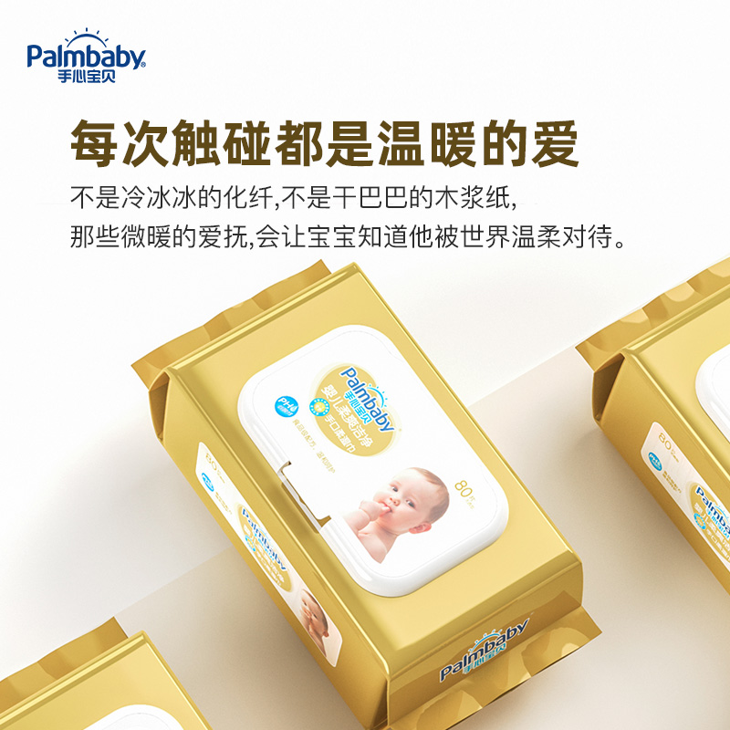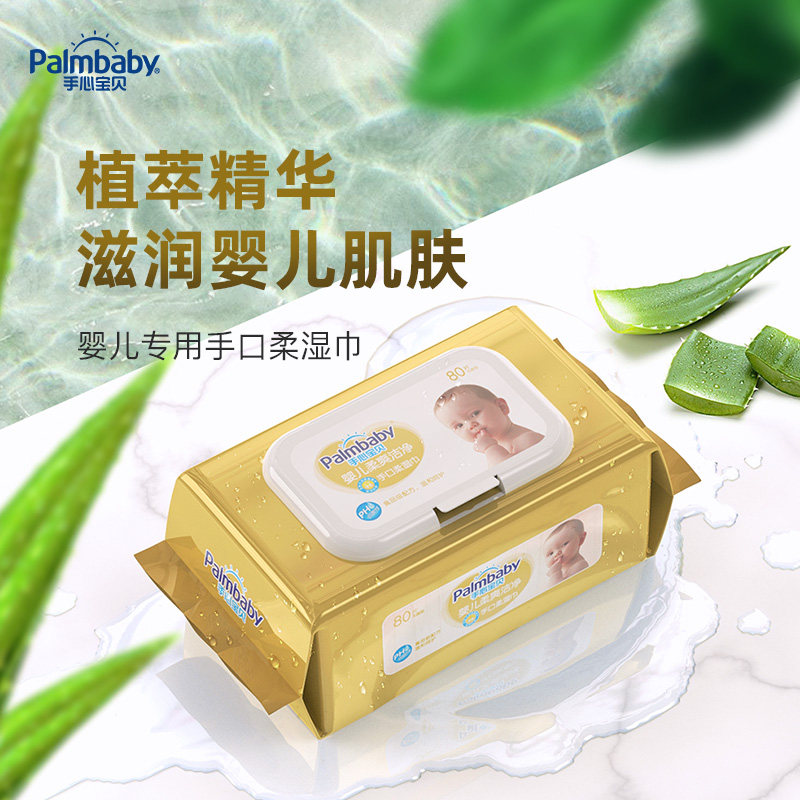手心宝贝湿巾婴儿手口80抽5包带盖新生婴幼儿棉柔湿巾宝宝湿纸巾