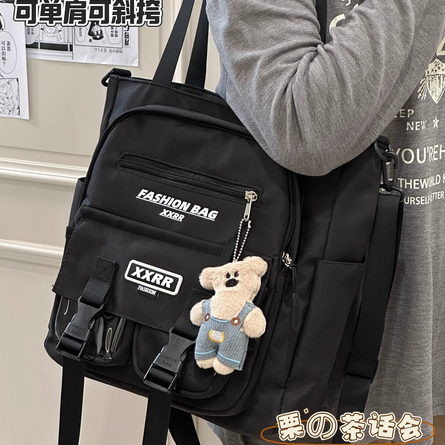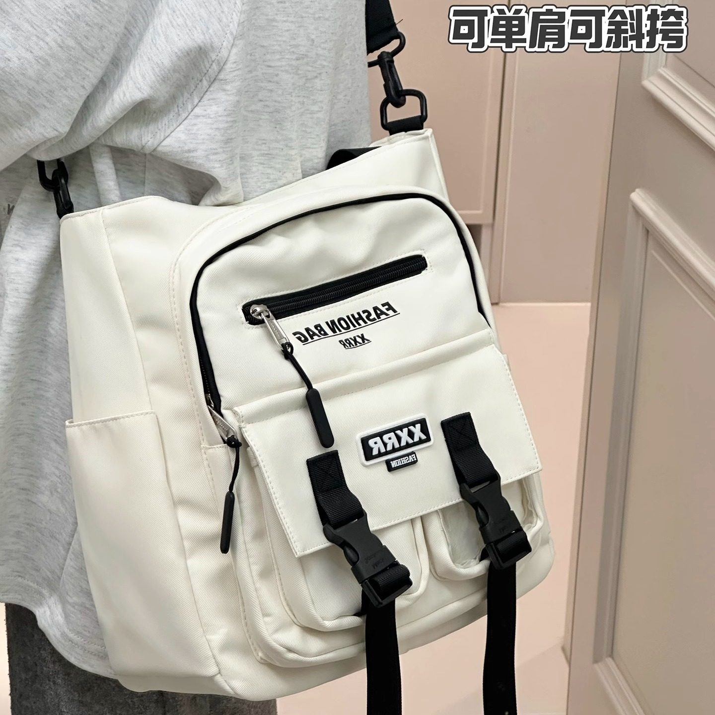 淘时尚百搭牛津布双肩包新款多层男女斜挎包净色休闲单肩包简约胸包