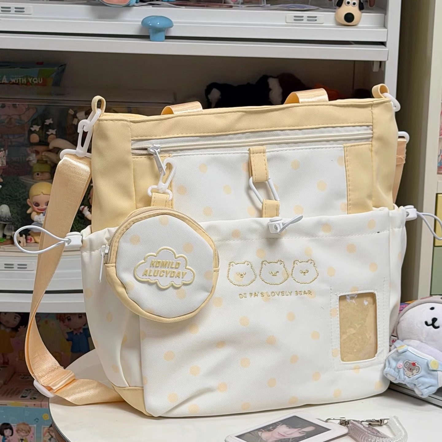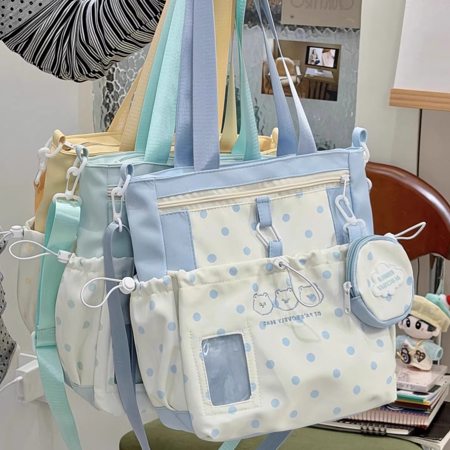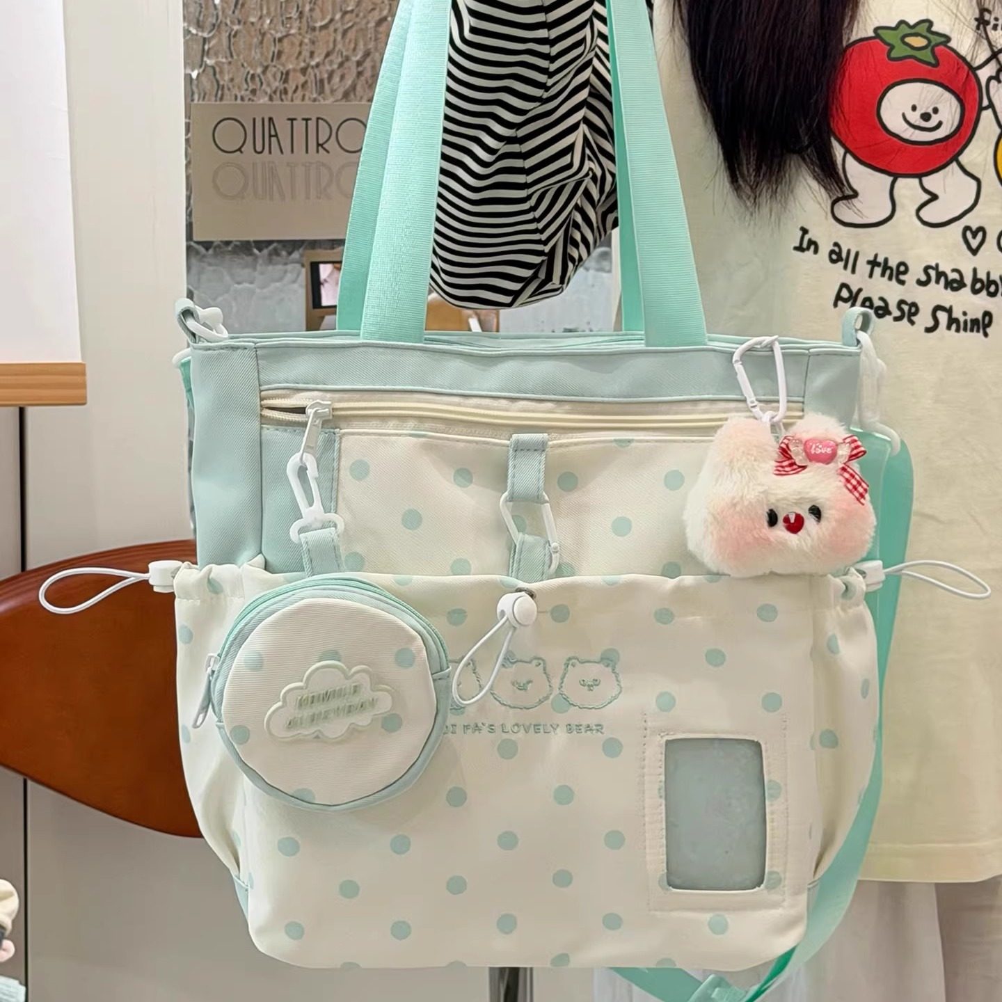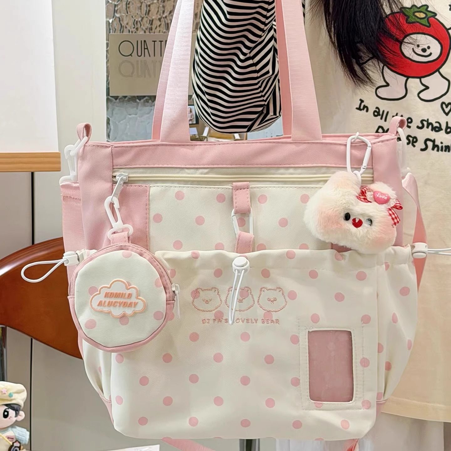 淘宝茶话会可爱波点斜挎包包女大容量帆布包学生上课补习袋单肩托特包
