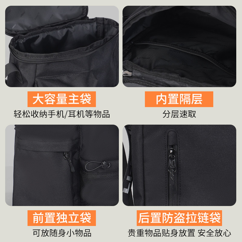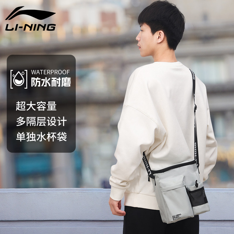 天猫李宁斜挎包新款男大容量多隔层防水单肩包户外出行多功能时尚背包