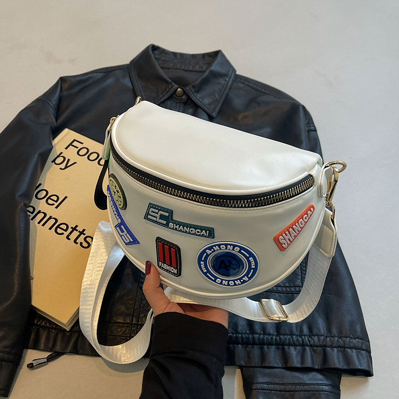 淘宝高级感斜挎小包包女士2025新款春夏时尚徽章软皮马鞍包宽带单肩包