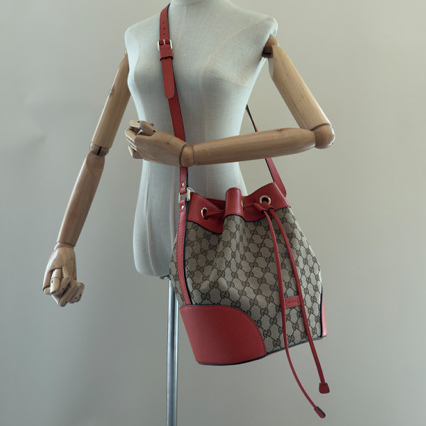 这款GUCCI古驰抽绳水桶包(型号388703)为中古9成新,品相优良,仅轻微使用痕迹。采用品牌经典米色与橙色GG帆布材质,搭配棕色皮革饰边,复古又时尚。抽绳设计开合便捷,内里空间充裕,可轻松容纳日常 essentials。配有可调节斜挎带,实现肩背、斜挎多种背法,实用百搭。五金件光泽如新,细节彰显品质。整体造型简约大气,兼具GUCCI的奢华格调与实用功能,是复古爱好者和时尚达人的理想之选。无论是通勤、约会还是休闲出行,都能轻松提升整体造型质感,极具收藏与佩戴价值。