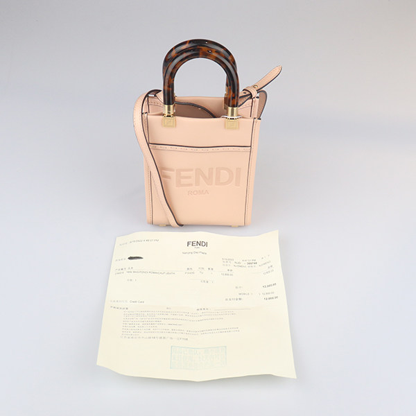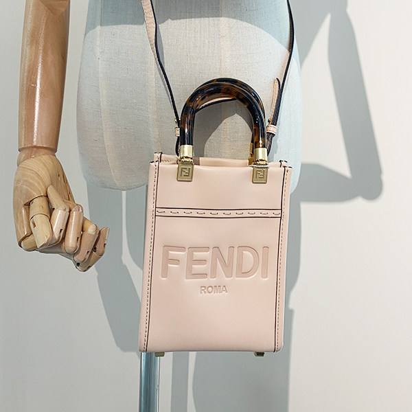 淘宝9新FENDI芬迪MINI SUNSHINE SHOPPER浅粉牛皮斜挎二手奢侈品包包