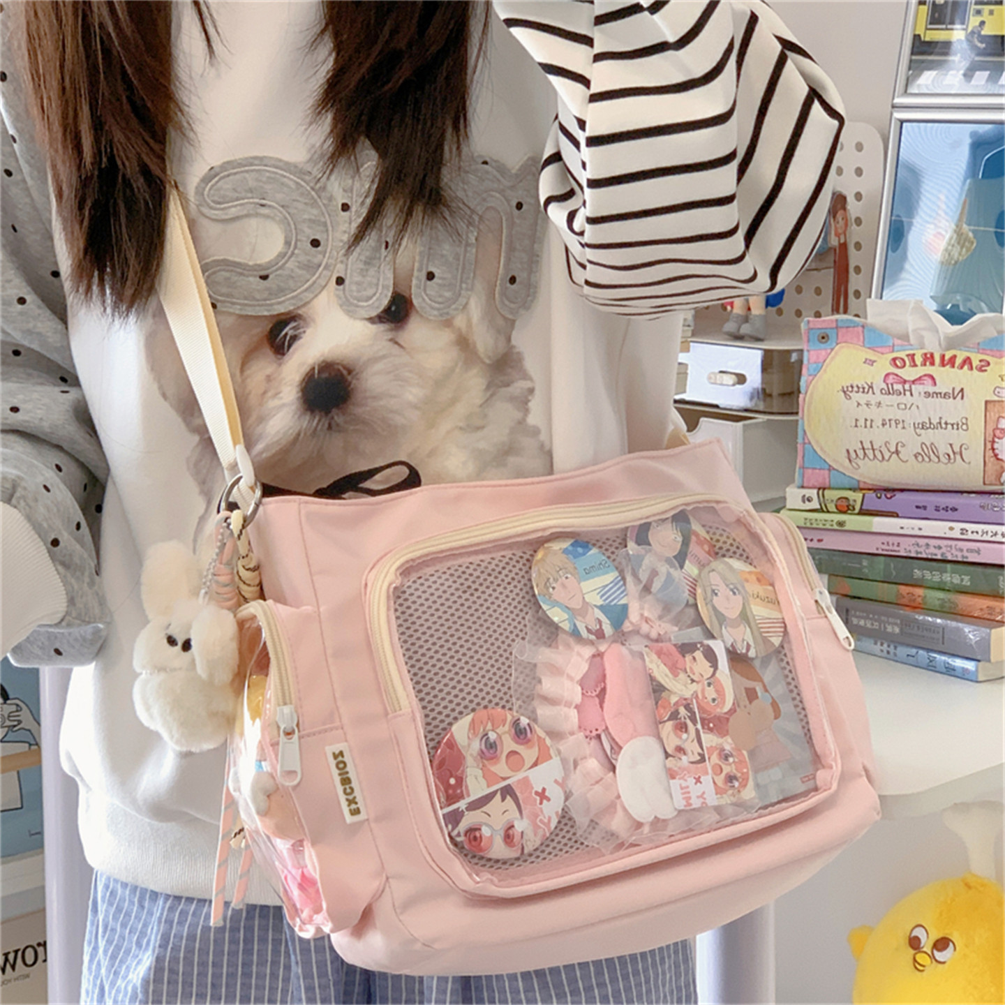 这款透明“痛包”是学生党与追星女孩的必备单品!采用高透PVC材质,颜值超高,轻松展示你的爱豆周边、徽章、立牌等收藏,个性十足又吸睛。包身设计简约时尚,兼顾实用与美观,虽外观小巧,内里却拥有大容量空间,轻松容纳课本、文具、水杯等日常用品,满足学生日常通勤与上课需求。斜挎、手提皆可,轻便舒适,解放双手。无论是校园出行、追星应援,还是日常逛街,都能成为亮眼搭配。小食量设计不显臃肿,透明质感更添潮流感,是颜值与功能兼具的实用挎包,轻松打造专属追星风格!
