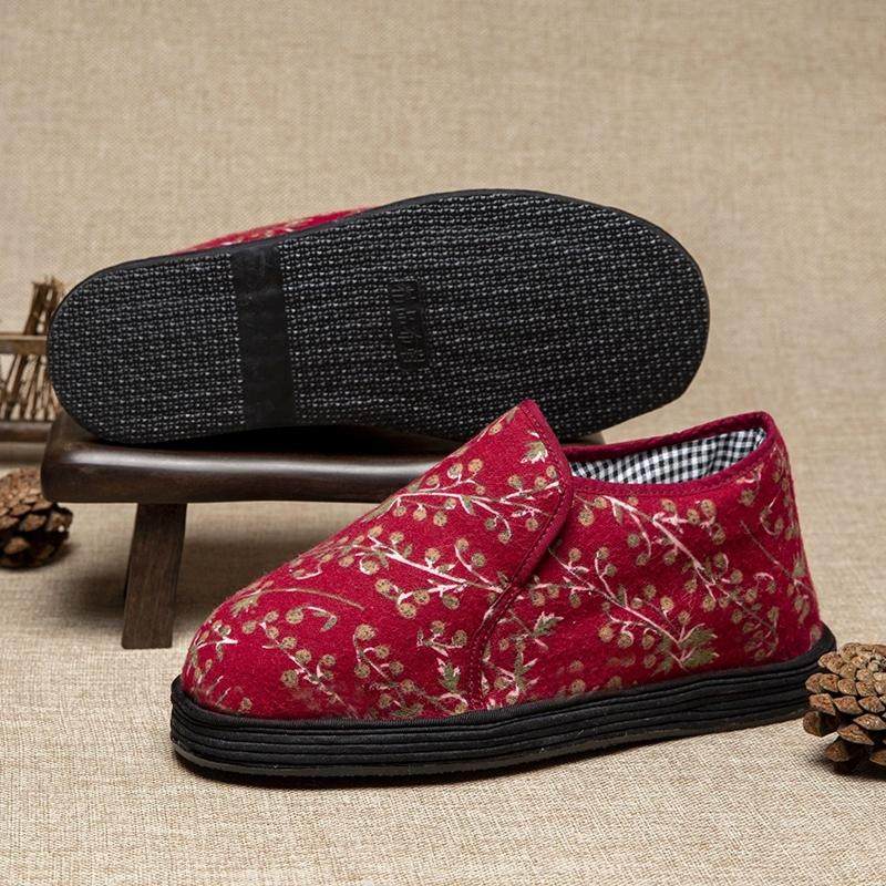 这款原创冬春老北京布鞋,采用传统千层底工艺,纯手工纳制,鞋底厚实耐磨,透气防滑。内里填充优质棉花,柔软保暖,适合寒冷季节穿着。鞋面精选棉布材质,亲肤舒适,搭配精致手工刺绣,图案雅致,彰显古典韵味。加厚设计有效锁温,兼顾保暖与舒适,适合日常休闲、居家或轻度户外活动。经典老北京布鞋造型,融合现代审美,既传承非遗工艺,又满足现代女性对品质与美观的双重需求。无论是搭配棉麻服饰还是现代休闲装,都能展现温婉气质,是冬春季节的理想保暖之选。