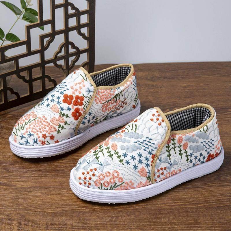 老北京布鞋女绣花汉服鞋古风平底妈妈鞋春夏季软底透气民族风单鞋