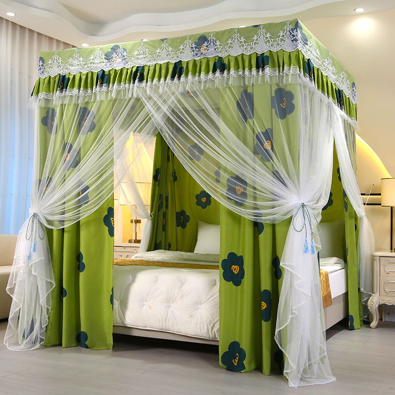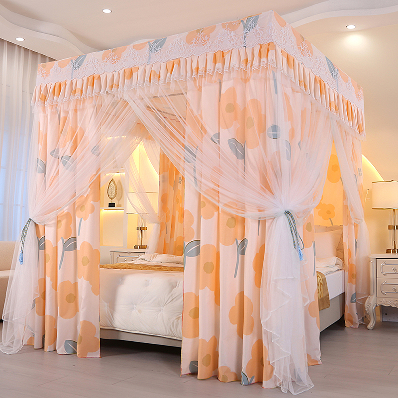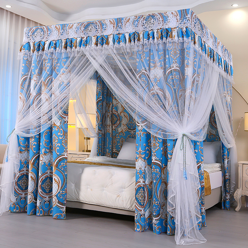 淘法式公主风蕾丝蚊帐卧室床帘一体式落地床幔防风加厚纱幔加粗支架