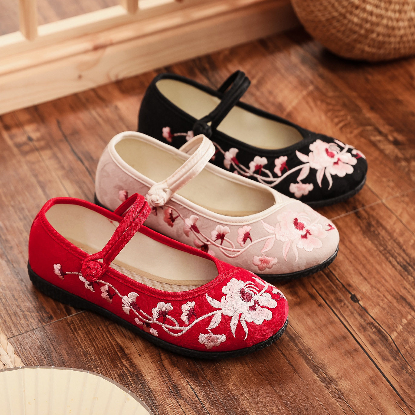 淘老北京布鞋女绣花汉服鞋古风平底妈妈鞋春夏季软底透气民族风单鞋