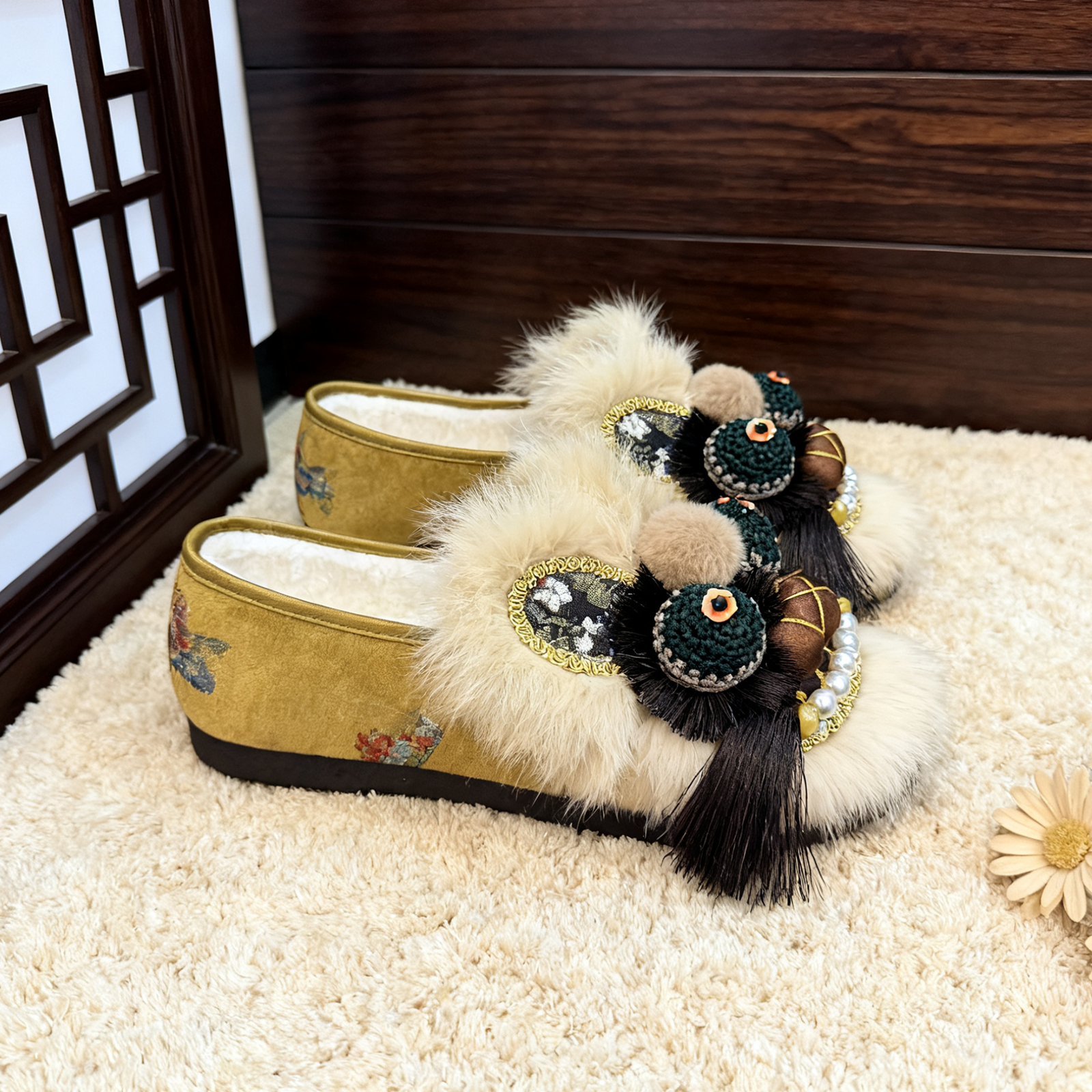 冬季旗袍汉服鞋民族风复古棉鞋毛口绣花鞋中国风中式加绒棉靴防滑