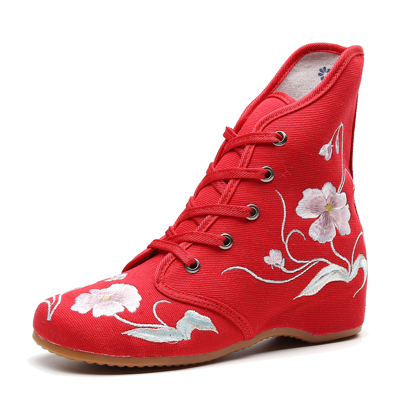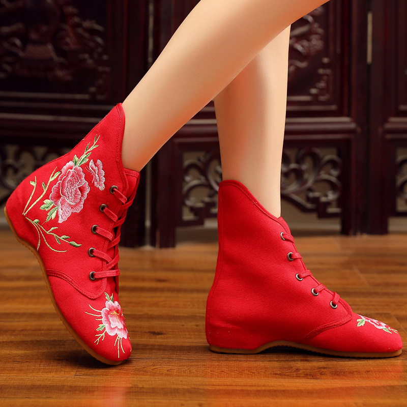 淘宝秋冬老北京布鞋舞蹈内增高绣花鞋民族风时尚系带短筒靴子女靴单棉