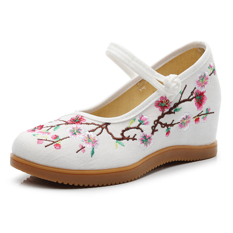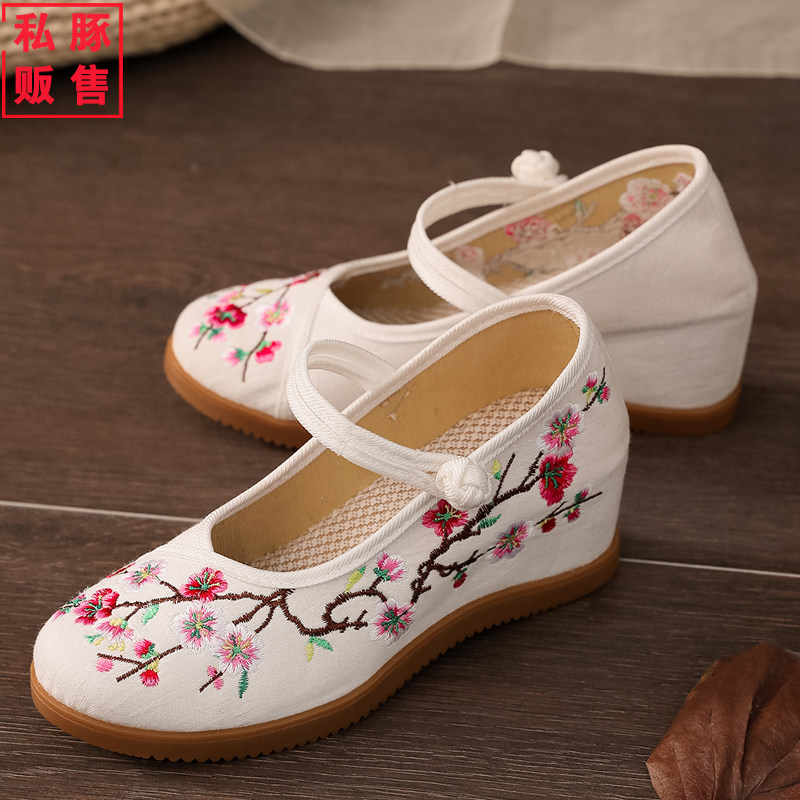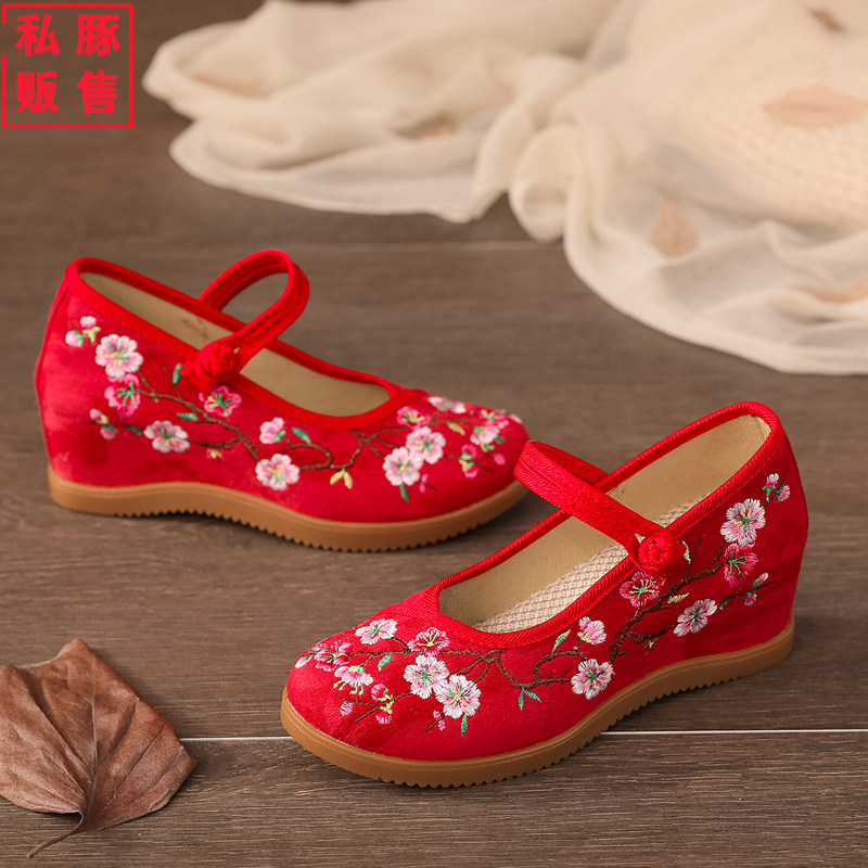 淘宝传统布鞋汉服鞋民族风高跟内增高绣花鞋北京古风鞋梅花单鞋舞蹈鞋