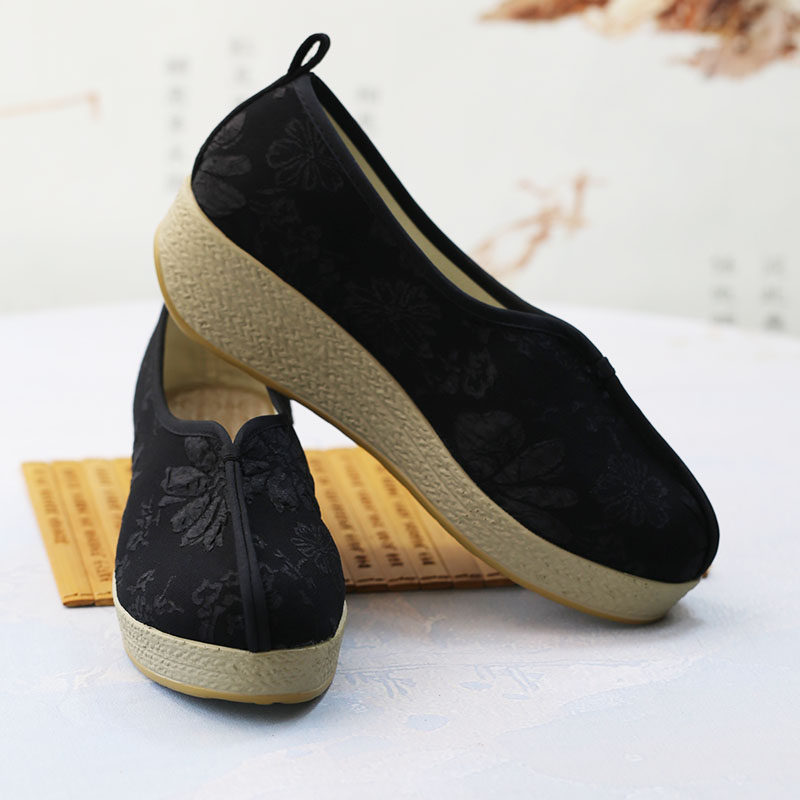 淘冬季古风汉服鞋子老北京布鞋内增高民族风旗袍厚底绣花鞋高跟原创