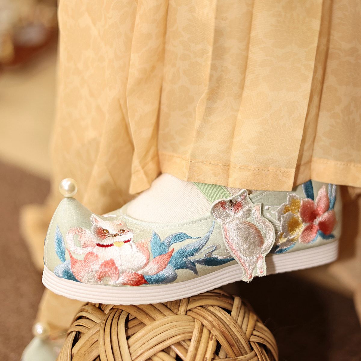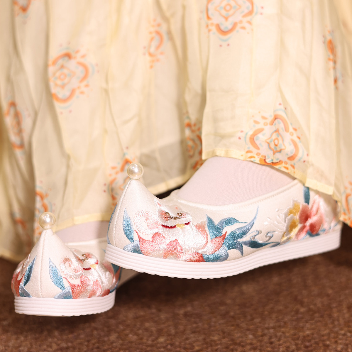 江南朱记原创【大狸子】女古风汉服配鞋,匠心打造,融合传统美学与现代舒适。采用优质棉麻面料,鞋面精致刺绣“大狸子”萌趣图案,灵动俏皮,尽显温婉气质。内里柔软透气,搭配适度内增高设计,悄然提升身形比例,久穿不累。平跟稳健,适合日常出行、拍照或汉服雅集。鞋底防滑耐磨,兼顾安全与美观。整体设计考究,细节考究,既承袭古典韵味,又贴合现代审美,是汉服爱好者的理想搭配之选。江南朱记,以手作温度,诠释东方雅致生活。