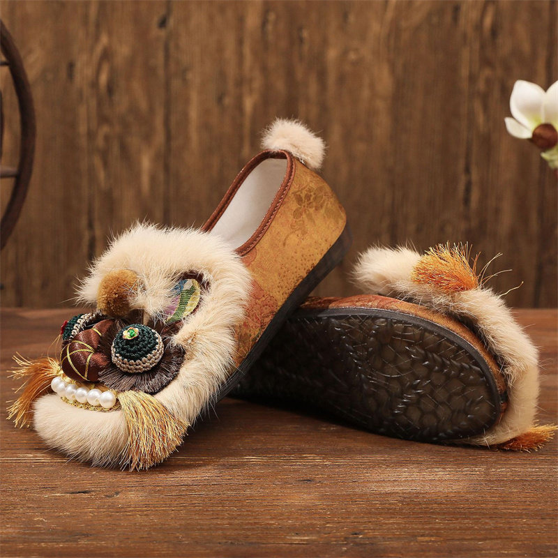 冬季旗袍汉服鞋民族风复古棉鞋毛口绣花鞋中国风中式加绒棉靴防滑