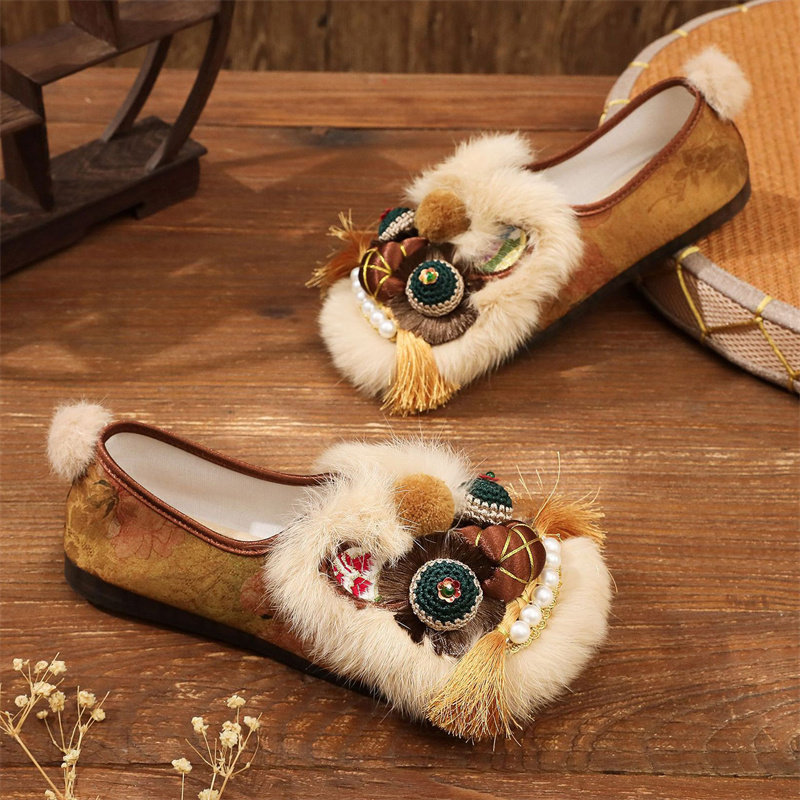 2025冬季老北京棉鞋女加绒加厚保暖民族风绣花鞋软底防滑汉服鞋子