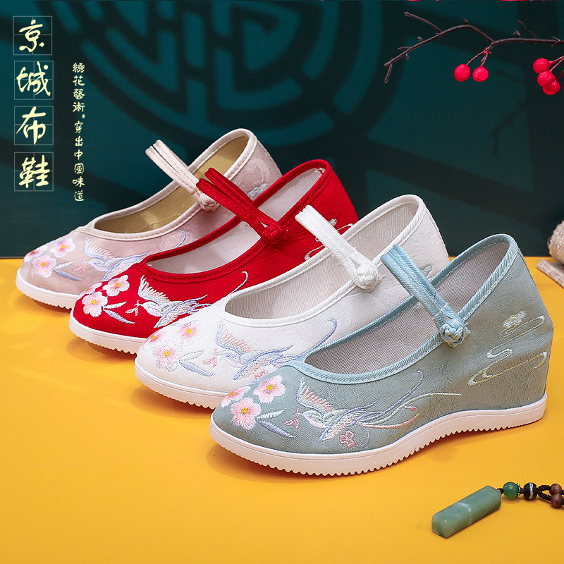 淘宝中国风内增高老北京布鞋女古装搭配汉服鞋子高跟古风厚底绣花鞋女