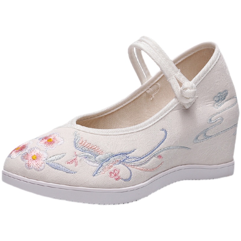 淘秋季搭配古装古风汉服鞋子女刺绣花内增高明制汉元素布鞋高跟cos