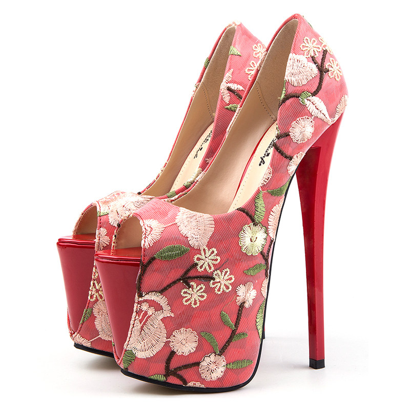淘宝绣花高跟鞋女22公分民族风大码40-43码恨天高19cm红色男伪娘反串