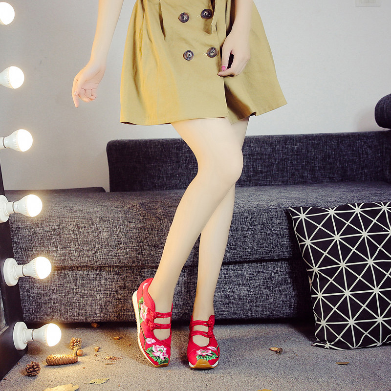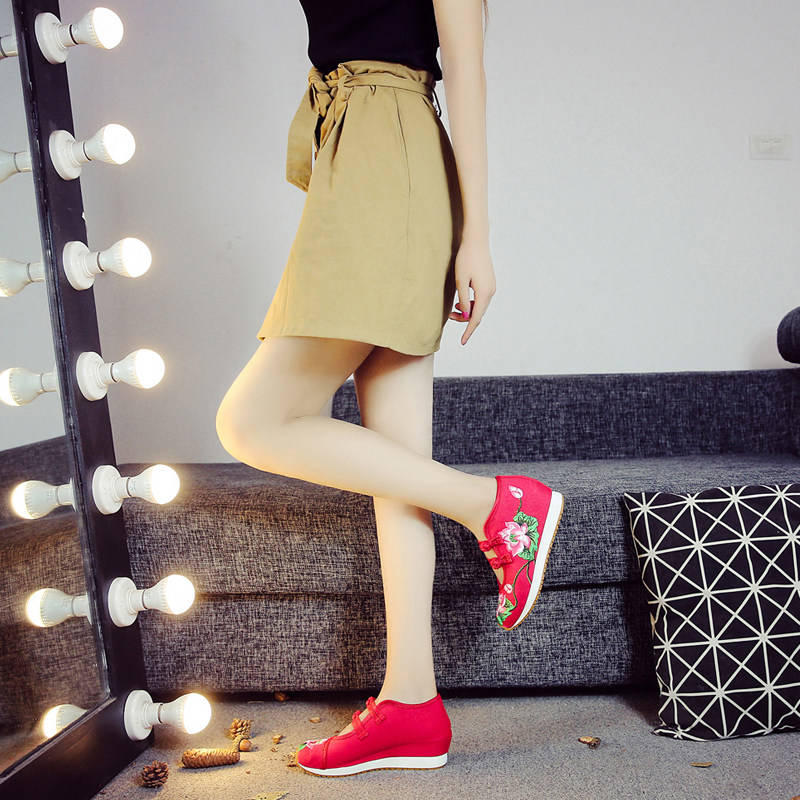 淘古风绣花鞋女 5cm内增高百搭汉服鞋民族风坡跟布鞋舒适透气舞蹈鞋