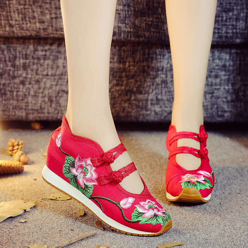 古风绣花鞋女 5cm内增高百搭汉服鞋民族风坡跟布鞋舒适透气舞蹈鞋
