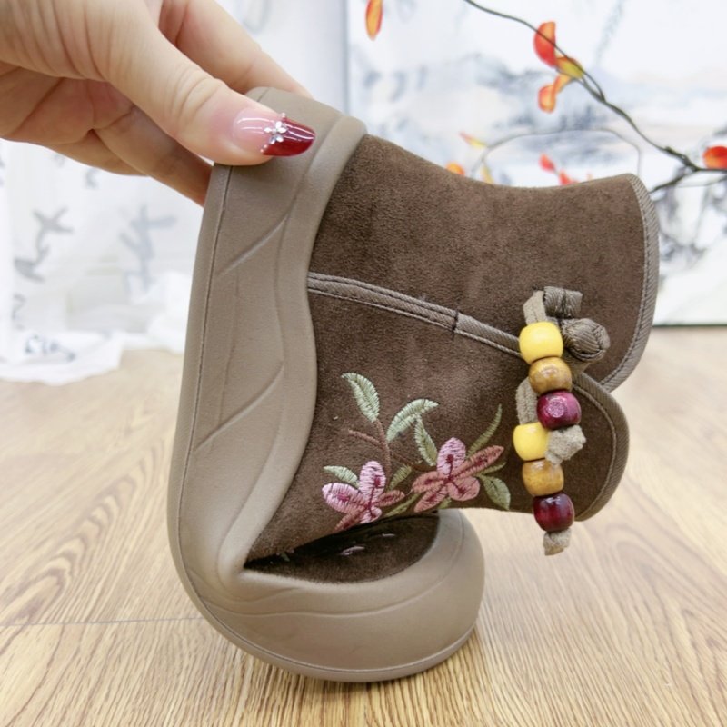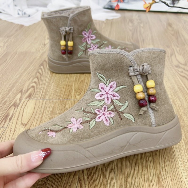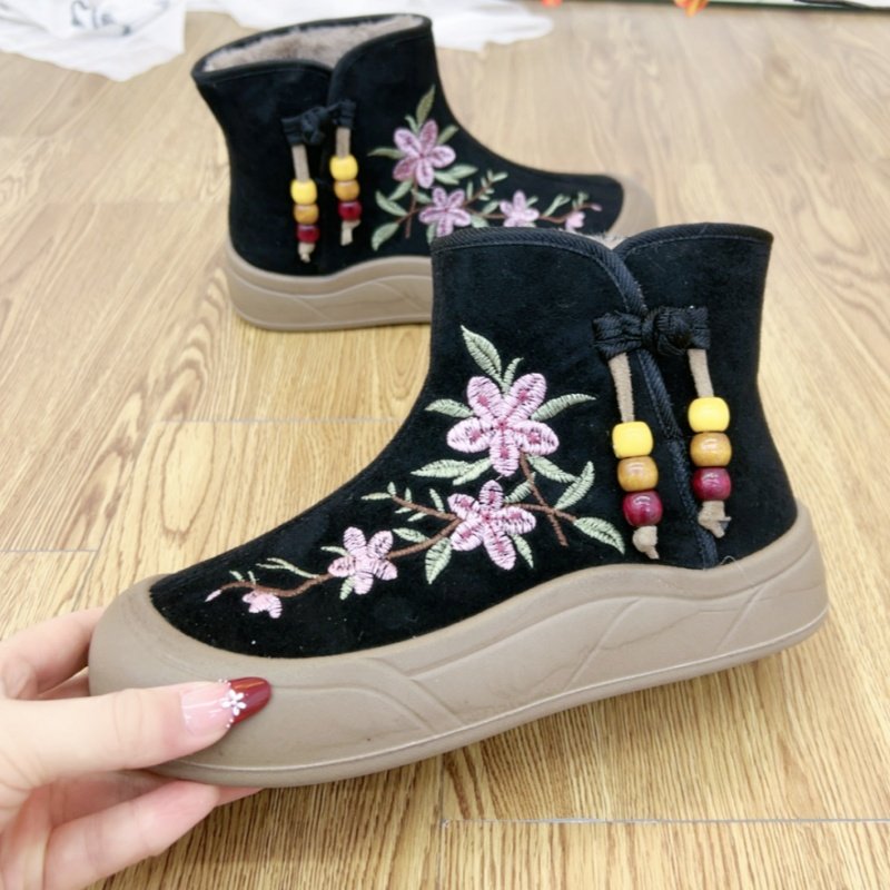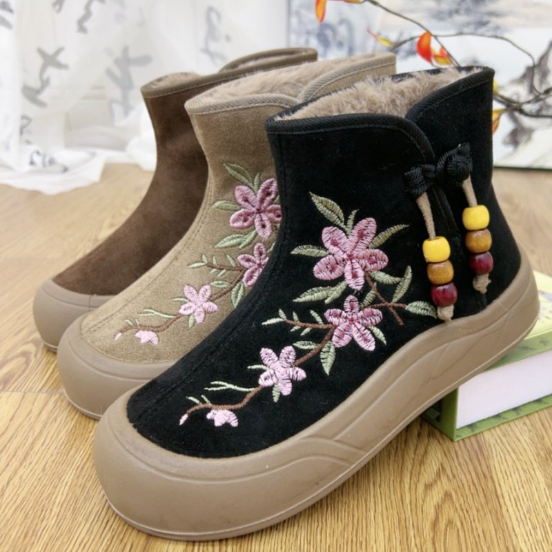淘冬季旗袍汉服鞋民族风复古棉鞋毛口绣花鞋中国风中式加绒棉靴防滑