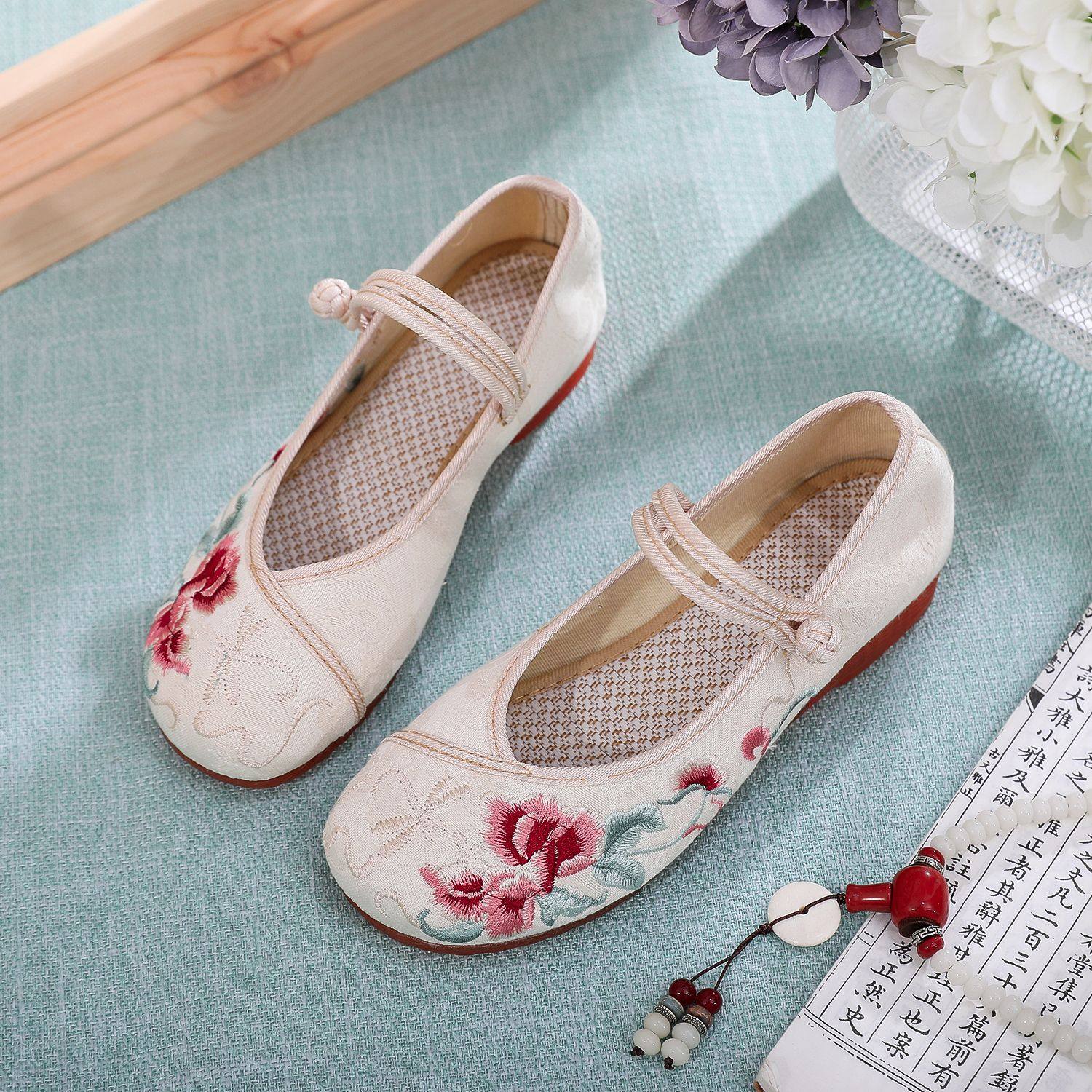 淘老北京布鞋女绣花汉服鞋古风平底妈妈鞋春夏季软底透气民族风单鞋