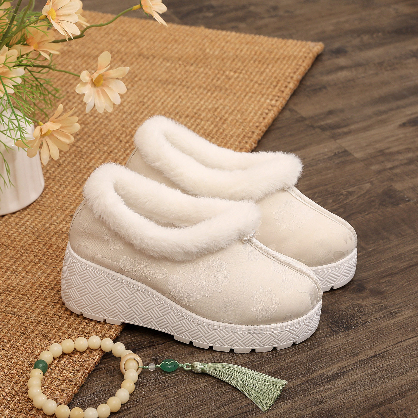 淘宝冬季加绒汉服鞋子女增高古风松糕鞋明制马面鞋厚底国风绣花鞋布鞋