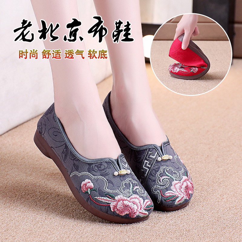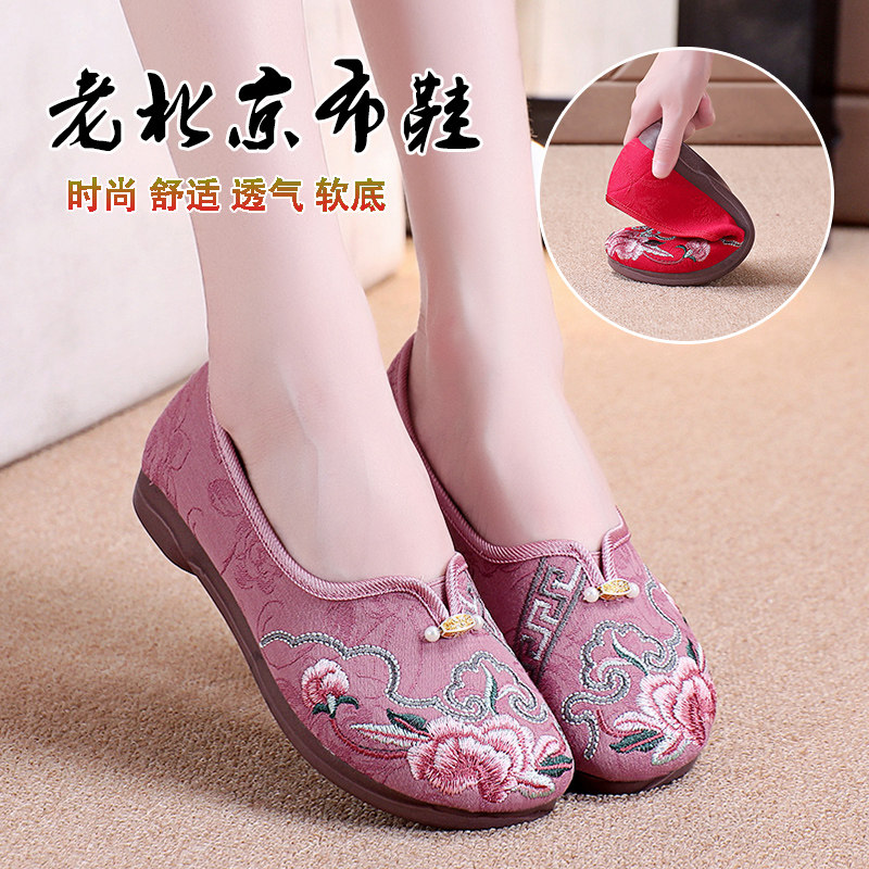 淘宝老北京布鞋女绣花汉服鞋古风平底妈妈鞋春夏季软底透气民族风单鞋