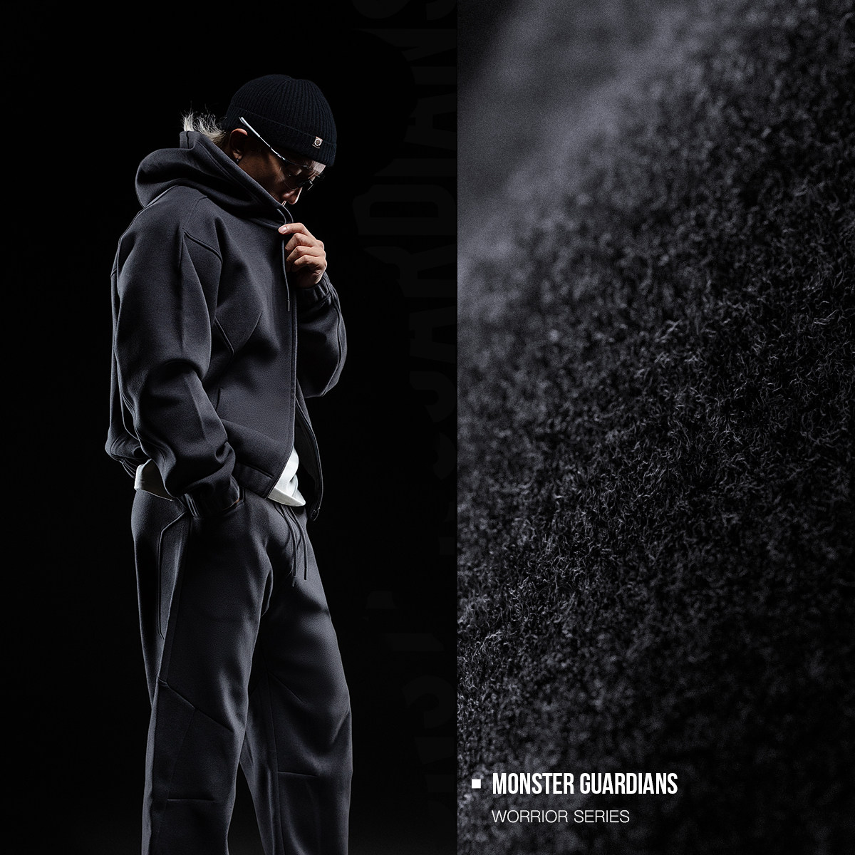 Monster Guardians勇士系列秋冬黑色卫衣卫裤休闲加绒运动套装男
