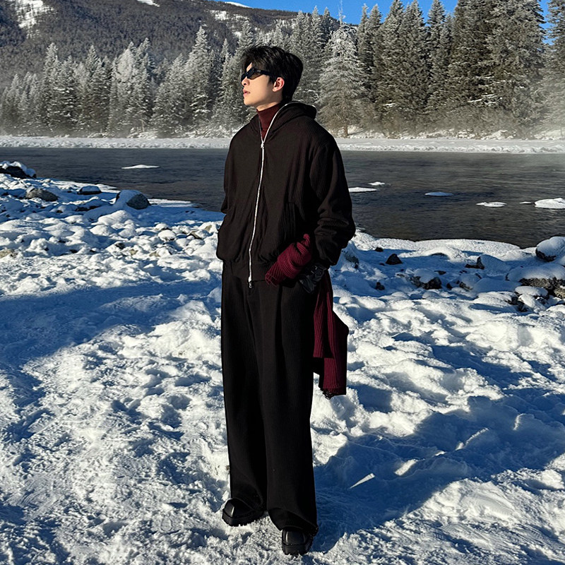 Hualun冬季男装套装采用加绒加厚设计,保暖舒适,适合寒冷天气。整套包含连帽卫衣与束脚运动裤,简约休闲又不失潮流感。卫衣胸前个性印花点缀,连帽抽绳设计实用有型;裤身立体剪裁,贴合腿部线条,活动自如。精选高弹面料,柔软亲肤,耐穿不易变形。整体配色低调百搭,轻松驾驭日常出行、健身运动等多种场合。Hualun注重细节与品质,为男士打造帅气有型的冬日穿搭,是冬季衣橱的实用之选,展现型男活力与自信风采。