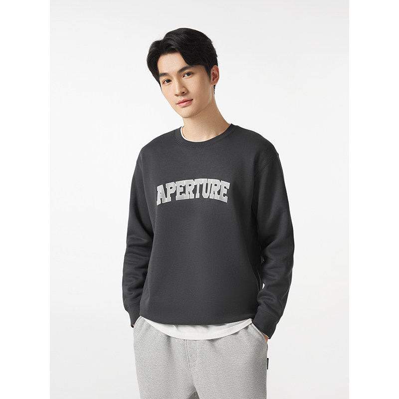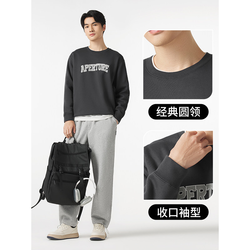 天猫热风冬季新款男士休闲通勤简约宽松舒适气质款印花加绒卫衣